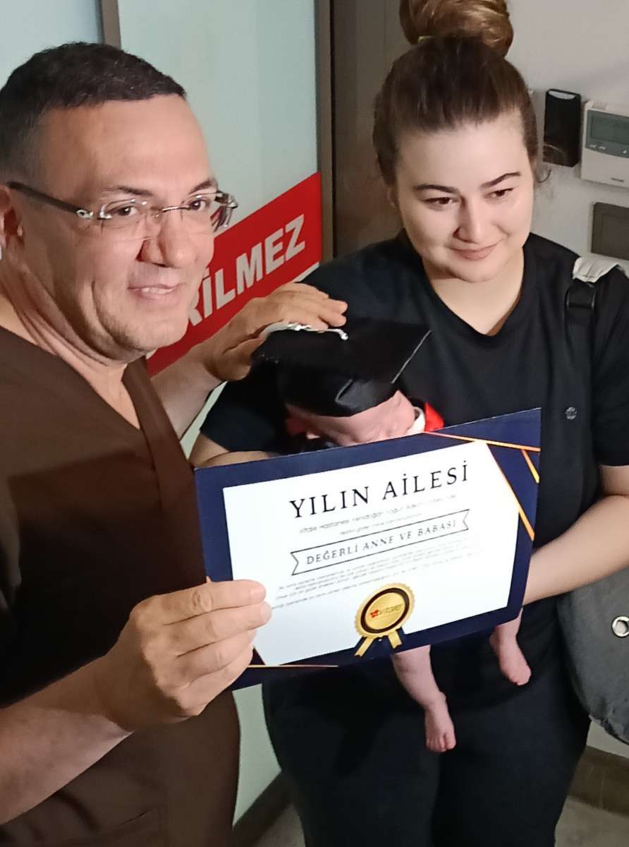"Mercan Çınar" adı verilen bebek, hastanenin yoğun bakımdan çıkan bebeklere yönelik uygulaması kapsamında, mezuniyet cübbesi ve kep giydirilerek taburcu edildi.
