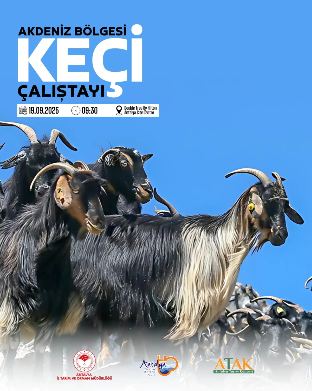 Antalya Tarım Konseyi (ATAK), Antalya Ticaret Borsası (ATB) ve Antalya Tarım ve Orman İl Müdürlüğü işbirliğiyle 19 Eylül’de "Akdeniz Bölgesi Keçi Çalıştayı" düzenlenecek.