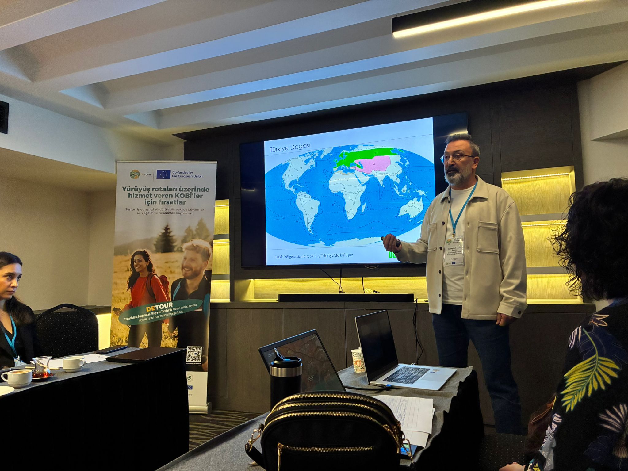 “DETOUR Akdeniz Yürüyüş Rotaları Boyunca Dayanıklı Turizm Ekosistemlerinin Geliştirilmesi” Projesi kapsamında düzenlenen eğitici eğitimi programı 21-23 Kasım 2025 tarihleri arasında Antalya’da gerçekleştirildi. Program, İl Kültür ve Turizm Müdürü Dr. Candemir Zoroğlu’nun açılış konuşmasıyla başladı. Üç gün boyunca sürdürülen eğitimlerde, farklı üniversitelerden akademisyenler ve alanında uzman danışmanlardan oluşan 11 kişilik kadro, katılımcılara sürdürülebilir turizm, iklim değişikliği, dijitalleşme ve yerel kalkınma konularında yoğun bir program sundu. Eğitim sonunda tüm katılımcılara sertifikaları takdim edildi.