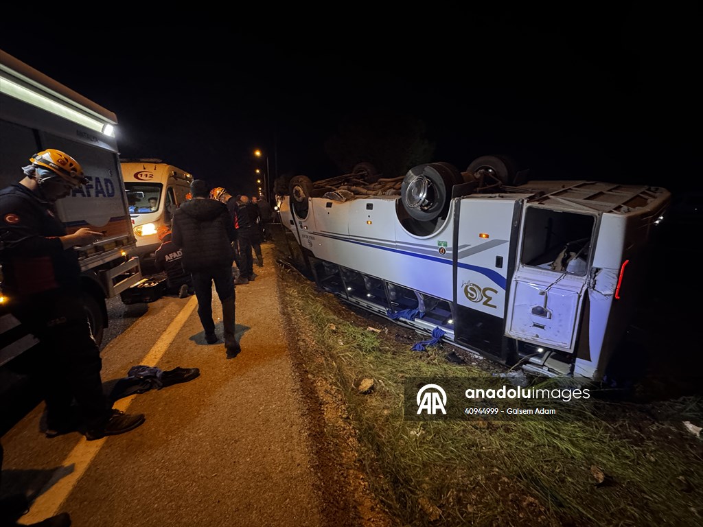 Antalya'nın Döşemealtı ilçesinde infaz koruma memurlarını taşıyan otobüsün devrilmesi sonucu 16 kişi yaralandı.