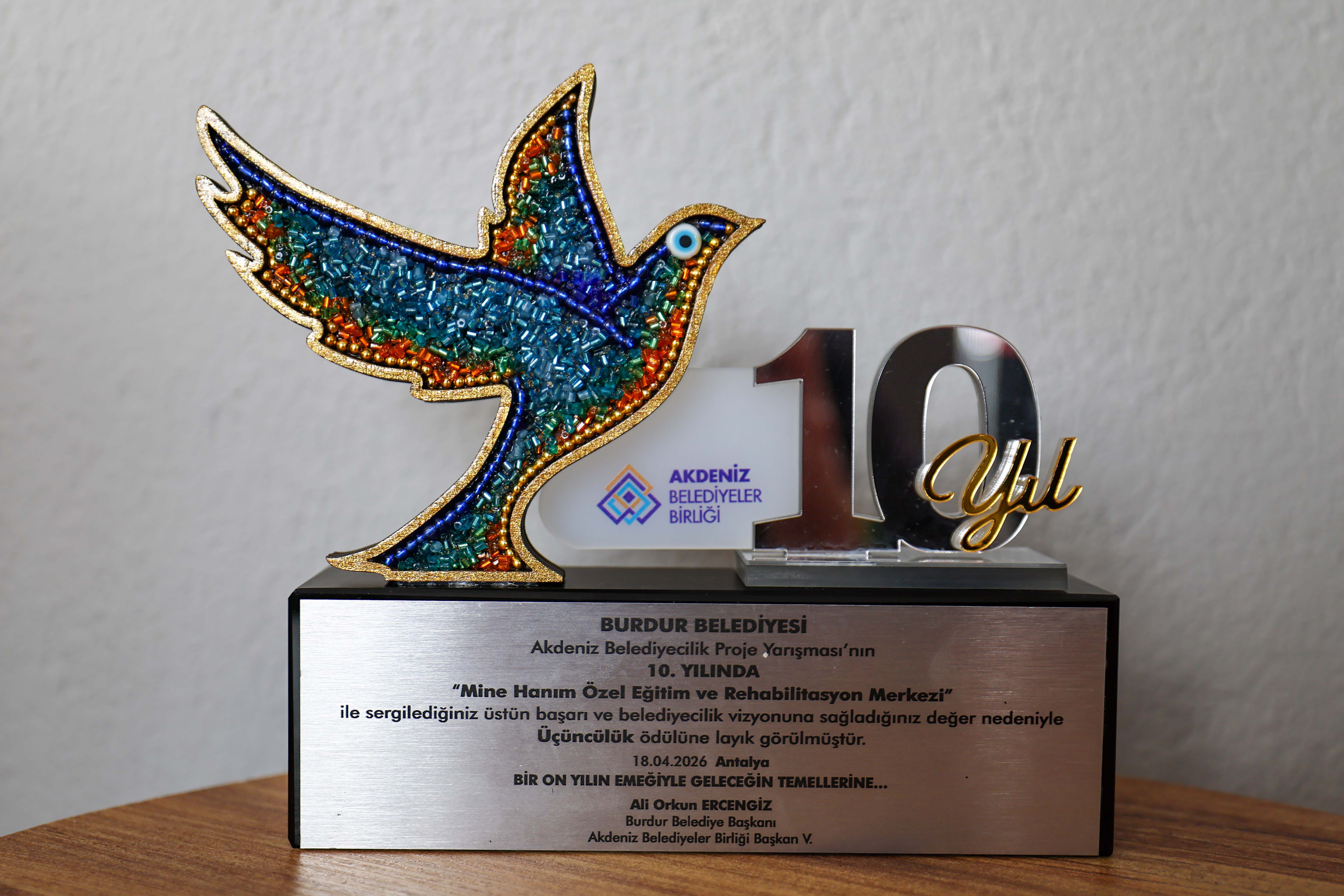 Akdeniz Belediyeler Birliği’nin düzenlediği 10. Akdeniz Belediyecilik Proje Yarışması’nda Burdur Belediyesi, Mine Hanım Özel Eğitim ve Engelli Rehabilitasyon Merkezi ile 3’üncülük ödülüne layık görüldü.