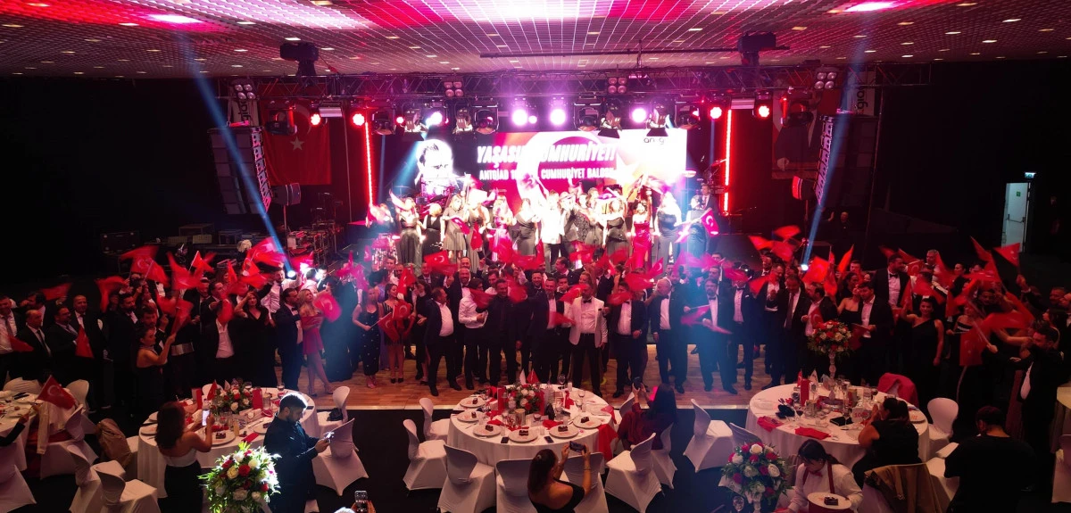 ANTGİAD’ın geleneksel Cumhuriyet Balosu, Su Otel’de bayraklar, marşlar ve unutulmaz anlarla kutlandı. Derya Uluğ’un sahnesiyle gece kırmızı-beyaz bir denize dönüştü.
