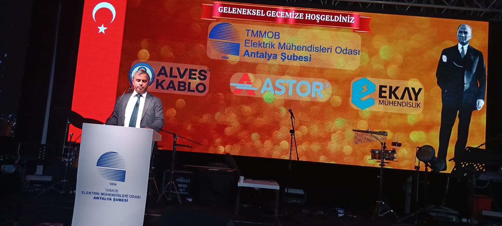 EMO Antalya Şube Başkanı Şaban Tat, gecenin açılışında yaptığı konuşmada, meslekte uzun yıllar emek veren üyelerin sektöre olan katkılarına değinerek mesleğin artan önemini vurguladı. "Meslek odamız dünyada enerji ihtiyacının hızla arttığı bir dönemde yeni teknolojik gelişmeler ile de birlikte her geçen gün yeni alanlarla birlikte hızla büyümekte. Yeni alanlarla ilgili birçok çalışmalar yapmakta ve mesleğimizin önemini her zaman arttırıcı yönde ilerlemekteyiz." dedi.