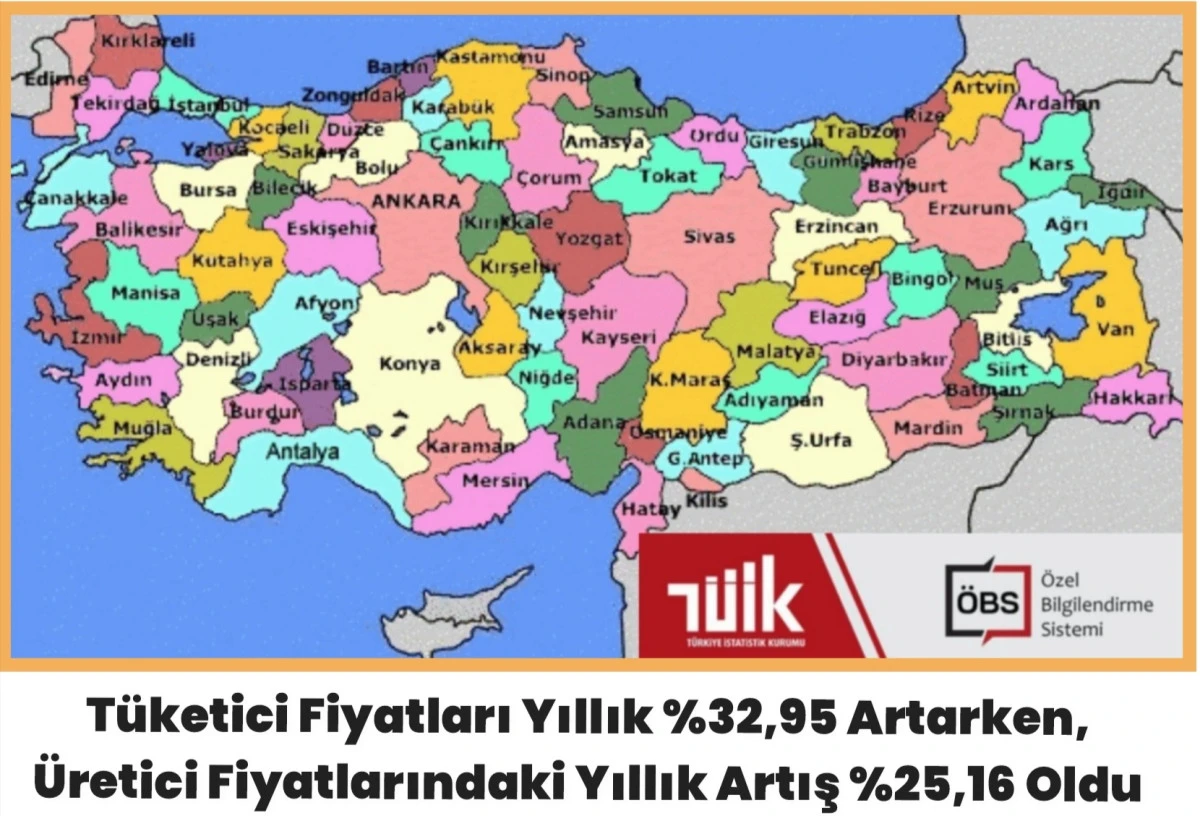 Tüketici Fiyatları Yıllık %32,95 Artarken, Üretici Fiyatlarındaki Yıllık Artış %25,16 Oldu ​Türkiye İstatistik Kurumu (TÜİK) tarafından açıklanan Ağustos 2025 verilerine göre, hem tüketici hem de üretici fiyatlarında artış ivmesi devam ediyor. Tüketici Fiyat Endeksi'nde (TÜFE) yıllık artış %32,95 olarak gerçekleşirken, Yurt İçi Üretici Fiyat Endeksi'nde (Yİ-ÜFE) bu oran %25,16 seviyesinde kaydedildi. Aylık bazda ise TÜFE %2,04, Yİ-ÜFE ise %2,48 arttı.