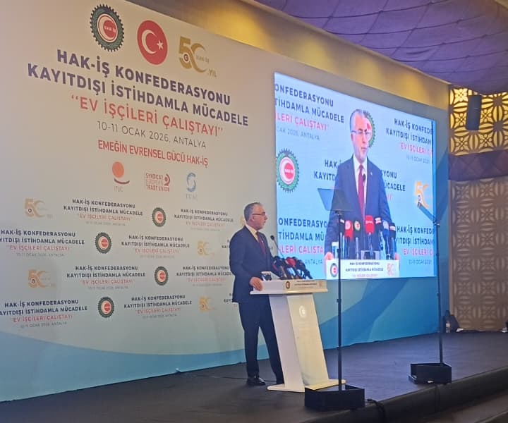 HAK-İŞ Konfederasyonu tarafından düzenlenen çalıştayda konuşan Bakan Işıkhan, Türkiye’nin demografik yapısındaki değişime dikkat çekerek, Uluslararası Çalışma Teşkilatı (ILO) standartlarında bir koruma kalkanı oluşturacaklarını vurguladı.