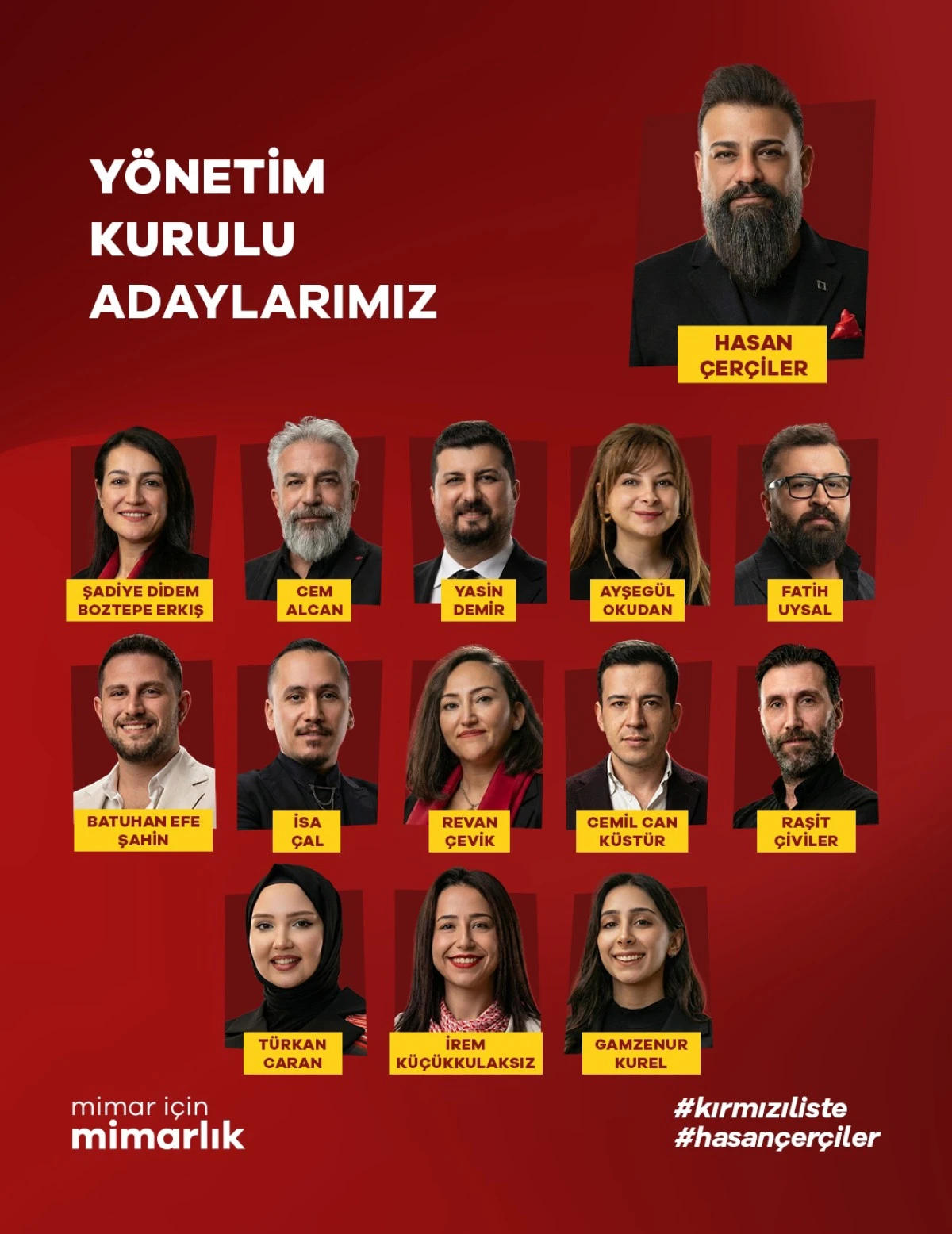 Mimarlar Odası Antalya Şubesi’nde seçim rüzgarları esiyor. Mevcut Başkan Hasan Çerçiler, "Söz verdik, yaptık" sloganıyla 21. Dönem adaylığını resmen açıkladı. 25 Ocak’taki genel kurula ‘Kırmızı Liste’ ile giren Çerçiler, gençlerin enerjisi ve meslek duayenlerinin tecrübesini aynı masada buluşturuyor.