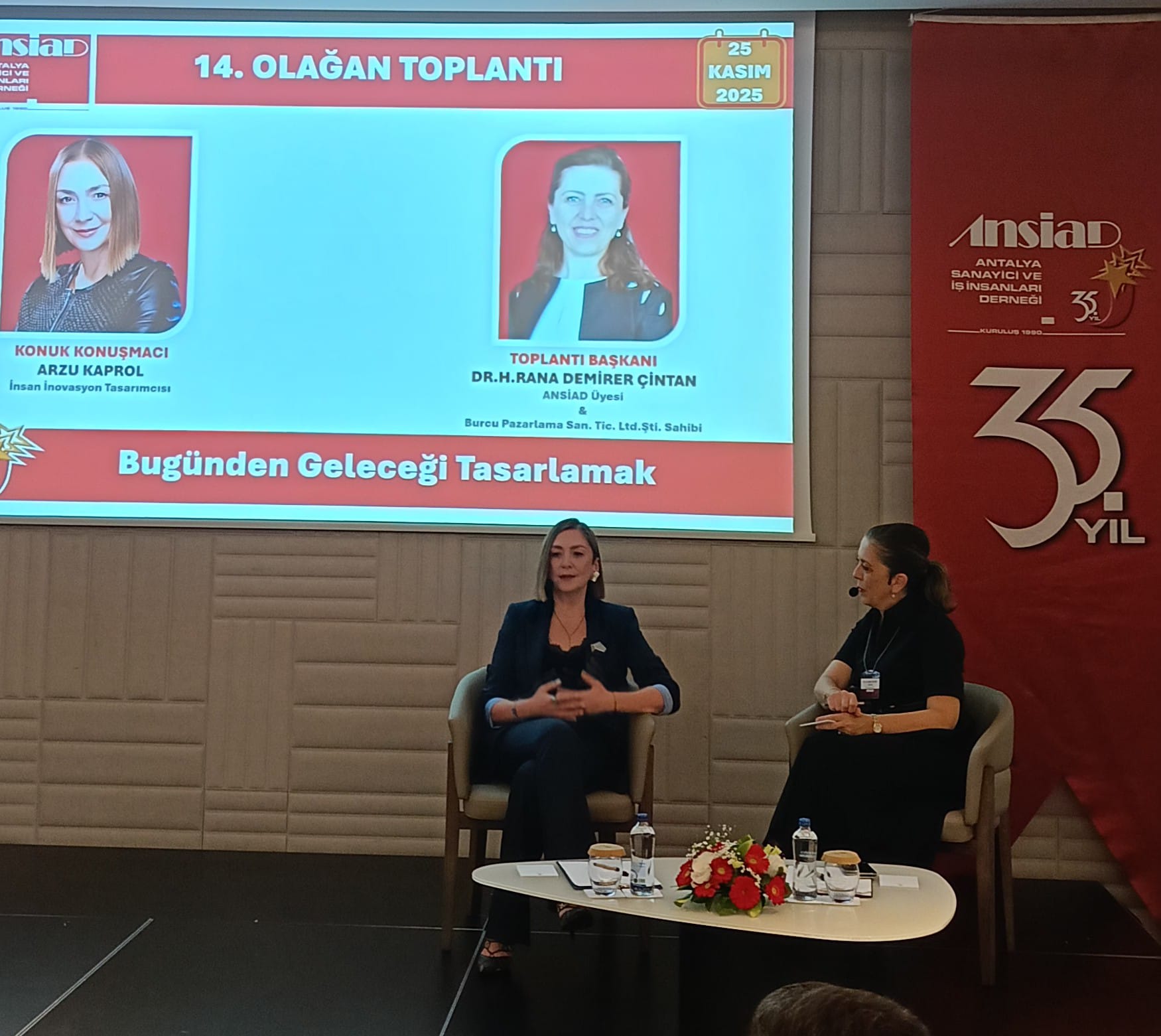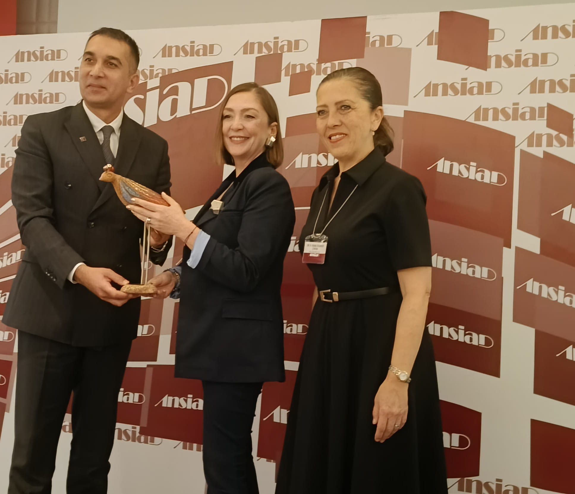 ANSİAD Yönetim Kurulu Başkanı Ercan Özbek, İnsan İnovasyon Tasarımcısı Arzu Kaprol’e değerli katılımlarından dolayı teşekkür ederek günün anısına özel bir hediye sundu. Özbek, Kaprol’e Antalyalı ünlü Seramik Sanatçısı Tufan Dağıstanlı’nın imzasını taşıyan seramik bir kuş hediye etti. ANSİAD 14. Olağan Toplantısı, konuşmaların ardından gerçekleşen hediye takdimiyle sona erdi.